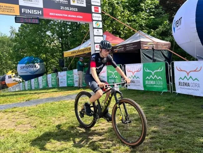 W ostatnią sobotę wystartowałem w 2 rundzie Pucharu Polski, który odbył się w Jeleniej Górze. Trasa techniczna oraz ciężka przez krótkie i strome podjazdy. Od samego startu jechałem pierwszy, próbowałem kilka razy uciec, lecz jeden zawodnik ciągle za mną jechał i nie zapowiadało się na to, żeby odpuścił. Pod koniec ostatniego okrążenia rywal zaatakował na bufecie, lecz ja już nie zdołałem utrzymać jego tępa. Po ucieczce rywala jadę drugi i próbuję go dogonić, lecz się to nie udało. Na metę wjeżdżam bez zmian na drugiej pozycji. Czuję lekki niedosyt, ale cały sezon jeszcze przede mną.