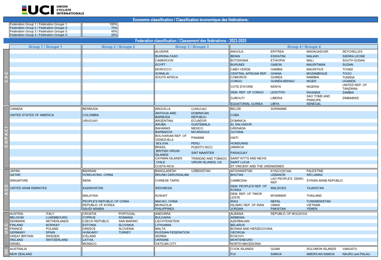 Teoretycznie, UCI pogrupowało kraje na podstawie różnych parametrów – takich jak PKB, rozwój infrastruktury, poziomu kolarstwa i jakości pracy lokalnej Federacji (cooo???), ale w praktyce zasada była prosta – jeśli dany kraj ma wyścigi z kalendarza WT, to automatycznie ląduje w pierwszej grupie. Tak stało się z Polską, a z tego co sprawdziłem – podział na grupy – na przestrzeni tych 15 lat nie był ani razu weryfikowany.