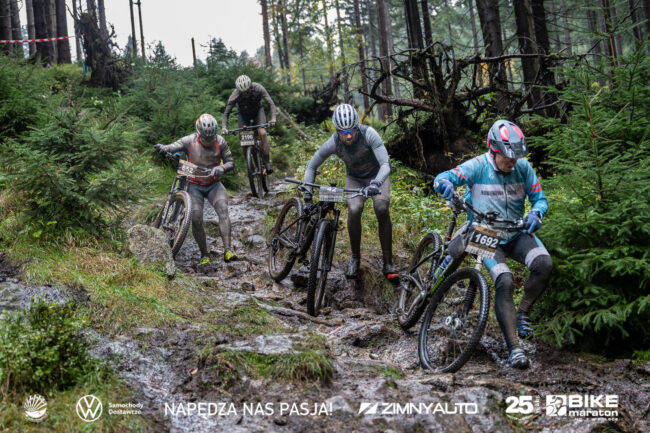 Tym razem złota polska jesień ukryła się za zasłoną z mgły i deszczu, ale takie maratony pamięta się przecież najlepiej. Mało kto się spodziewał, że izerskie szutry kryją w sobie tyle błota, a ostatni w tym roku Bike Maraton był naprawdę wymagającym startem. Wszyscy już dotarli do upragnionej mety, a sobotni wieczór na dolnej stacji kolei gondolowej SKI&SUN należał w stu procentach do zwycięzców i wszystkich uczestników Bike Maratonu 2025.