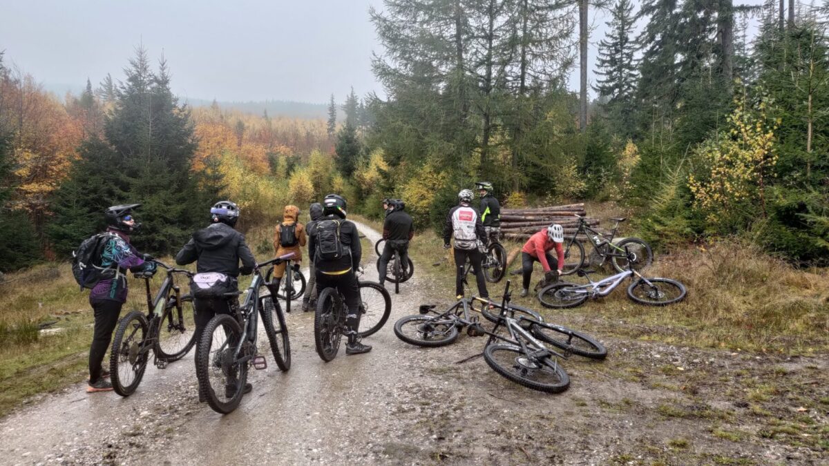 Wszyscy uczestnicy zostali na podstawie wstępnych deklaracji podzieleni na grupy. W pierwszej kolejności na analogi oraz rowery wspomagane, a dalej na podstawie umiejętności. Ostatecznie powstało pięć grup, a każda z nich była pod opieką przewodników ze Stowarzyszenia KRKEN (@krken_mtb) czyli nowo powołanej Komitywy Rowerowej Karkonoskie Enduro, którego celem nadrzędnym jest zajęcie się totalnie niezaopiekowanymi Olbrzymami oraz dopełnienia ich legalnymi trasami enduro! Bo potencjał tego regionu jest niewykorzystany, a to co powstało dotychczas, zaniedbane.