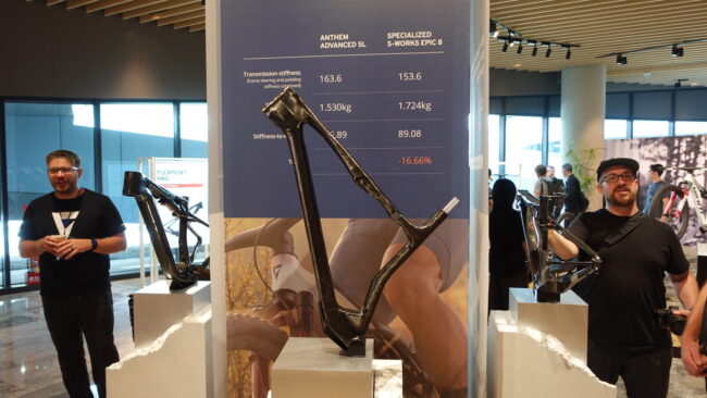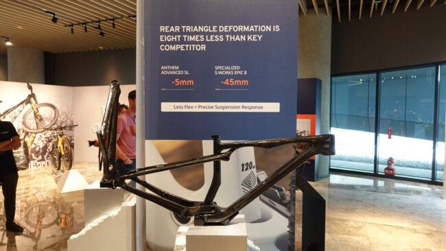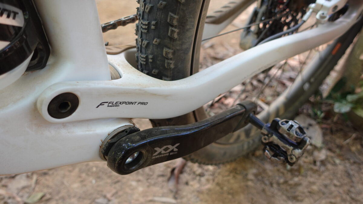 Jednozawias w technologii Flex Point PRO w Anthemie pojawił się już w 2021 roku wypierając jeden z autorskich i do dziś mocno cenionych projektów, jakim jest zawieszenie Maestro. Jest to jedna z najbardziej skrywanych tajemnic, bo w przeciwieństwie do konkurencyjnych jednozawiasów, ten w najnowszym Anthem Advanced SL praktycznie wcale nie zabiera energii, która wynika z pedałowania czy hamowanie, a jednocześnie doskonale tłumi najmniejsze nierówności na trasie powodując, że rower nie traci trakcji ani na podjazdach, ani na zjazdach. Dodatkowo flip-chip zamontowany w górnej rurze pozwala na zmianę geometrii roweru o pół stopnia. Jednocześnie niewiele i wiele.