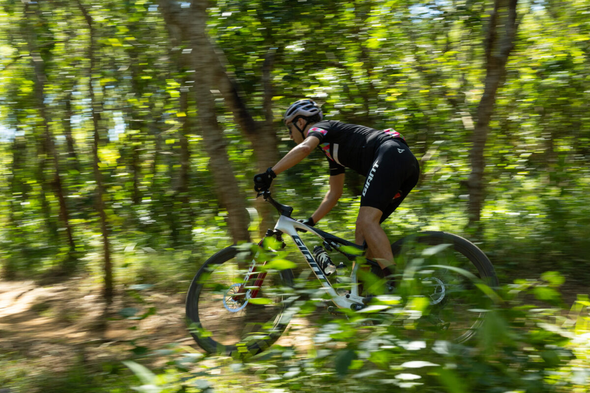 Bunny Trail w wersjach 4 i 6 km po których jeździliśmy porównałbym do jakiś prostszych singletracków, na których dołożono kilka trochę bardziej technicznych elementów w postaci zjazdów, band i kilku bardzo stromych, choć krótkich podjazdów. Nie zabrakło zjazdów po kamieniach czy korzeniach. Było absolutnie wszystko, żeby sprawdzić jak rower radzi sobie w tak zróżnicowanym terenie.